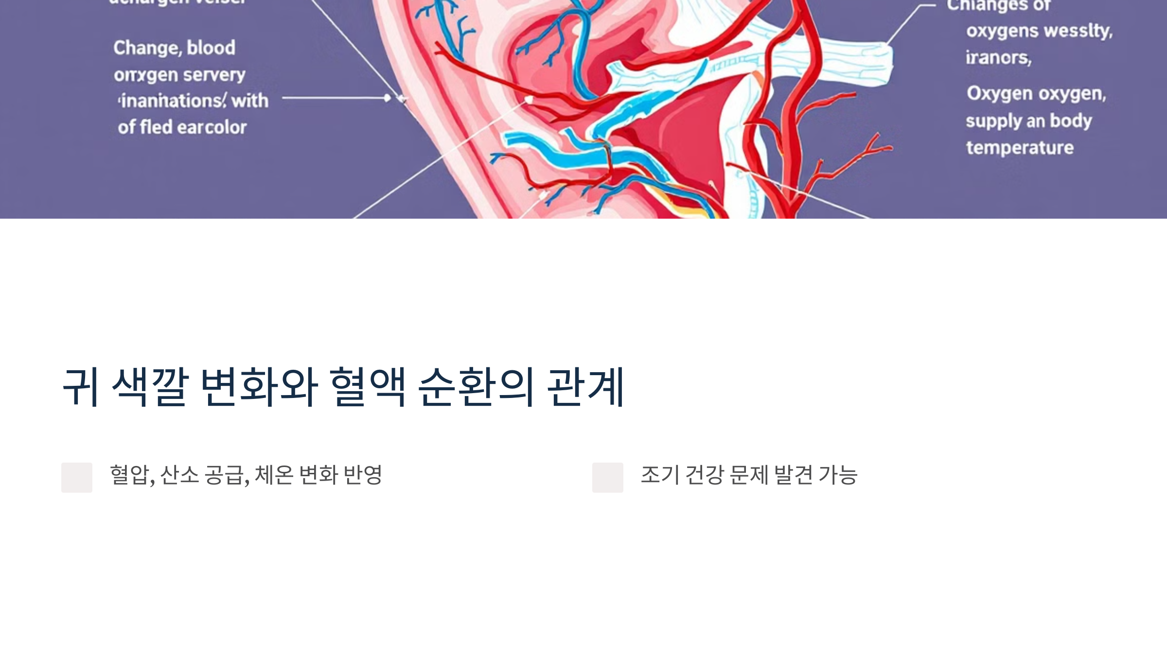 귀는 혈액 공급이 풍부한 부위로, 피부 아래의 혈관 상태에 따라 색깔이 변할 수 있습니다. 이는 혈압, 산소 공급, 체온 변화 등 신체의 전반적인 혈액 순환 상태를 반영합니다. 귀 색깔의 변화를 통해 조기에 건강 문제를 발견할 수 있습니다.