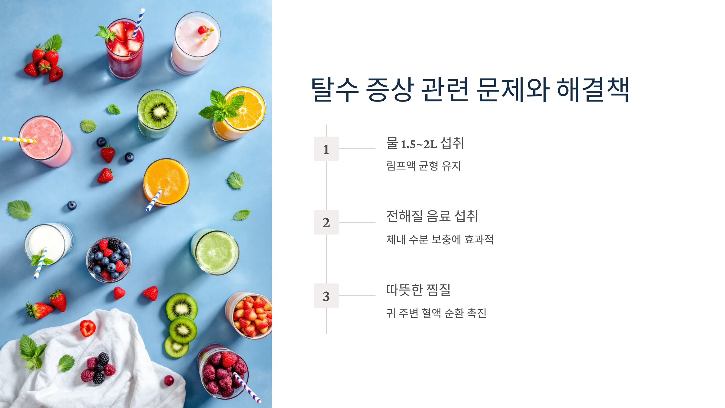 귀 건강을 지키기 위해 탈수 증상을 해결하는 방법을 단계별로 정리했습니다. 이 표를 참고하여 실천 가능한 해결책을 따라 보세요.