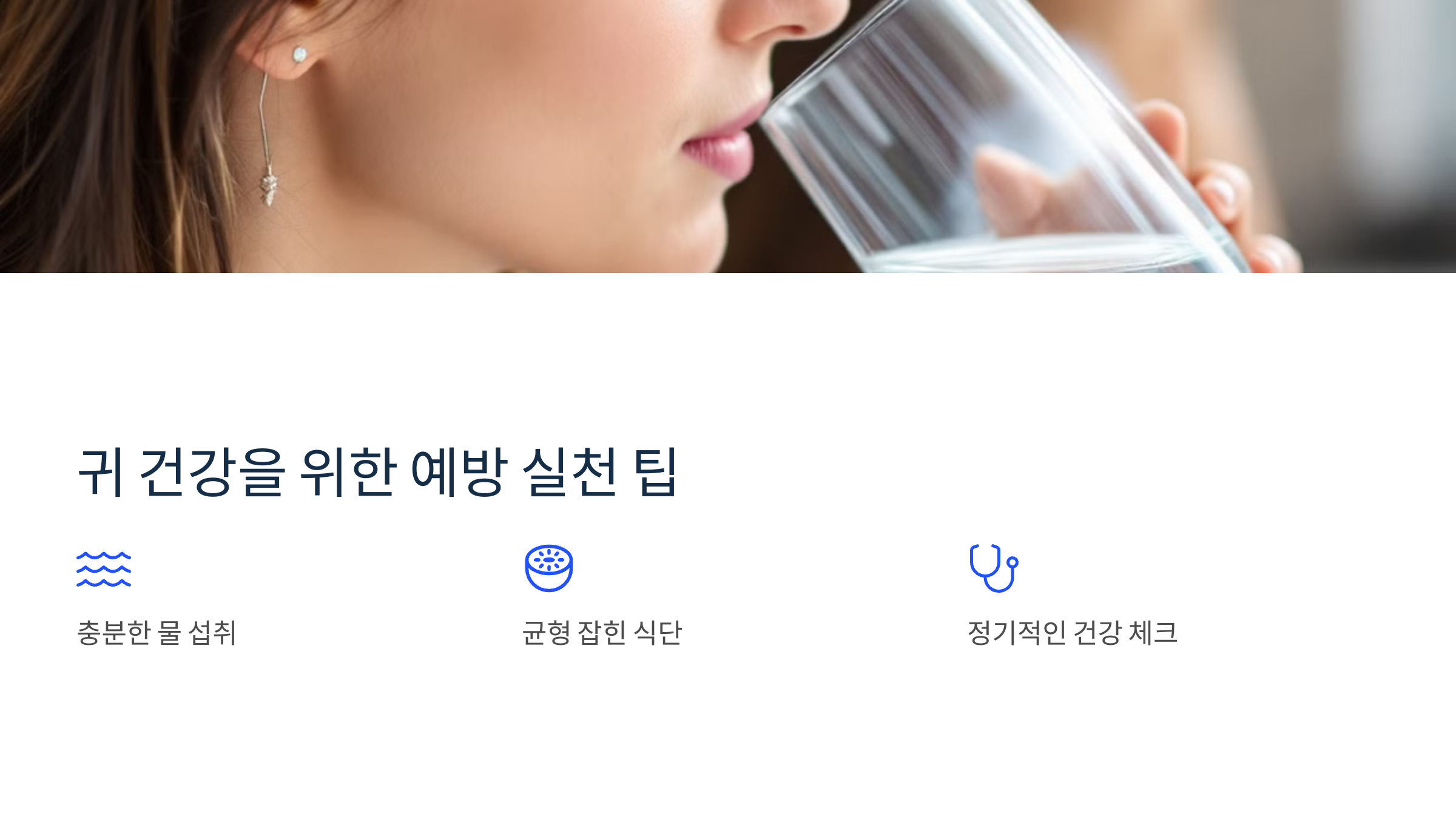 귀는 우리의 일상과 삶의 질에 직결된 중요한 기관입니다. 수분 섭취를 통해 귀 건강을 유지하고, 더 건강한 삶을 위해 꾸준히 실천해 보세요.