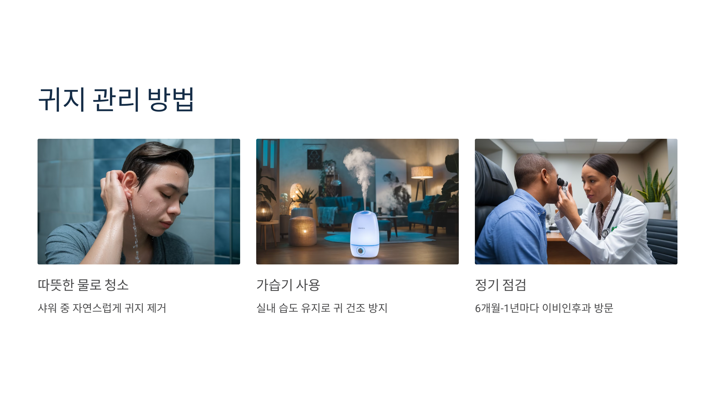 - 귀지를 안전하게 관리하고 과도한 세척을 피하세요.