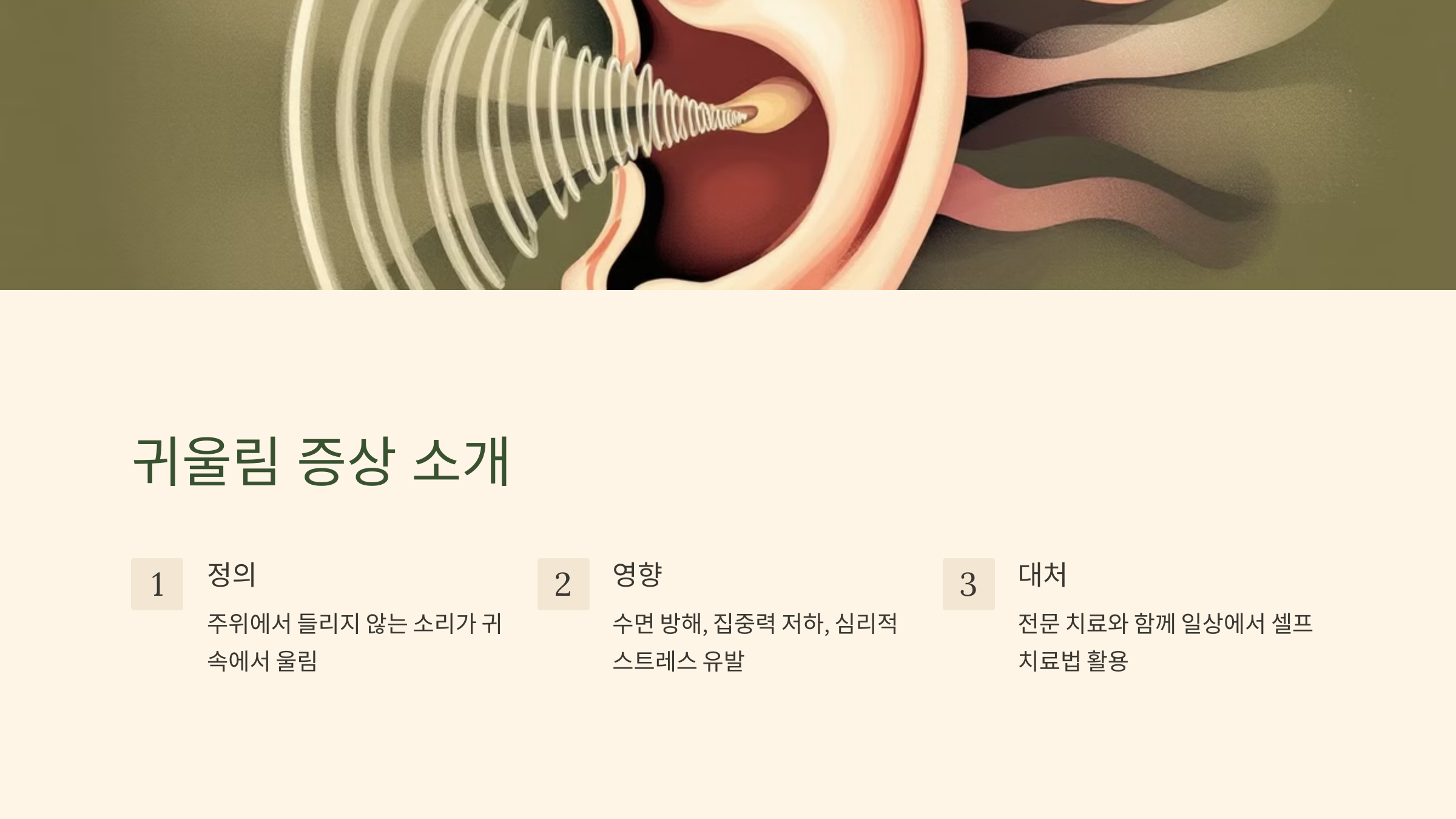 👂 서론: 귀울림 증상, 혼자서도 완화할 수 있을까요?
