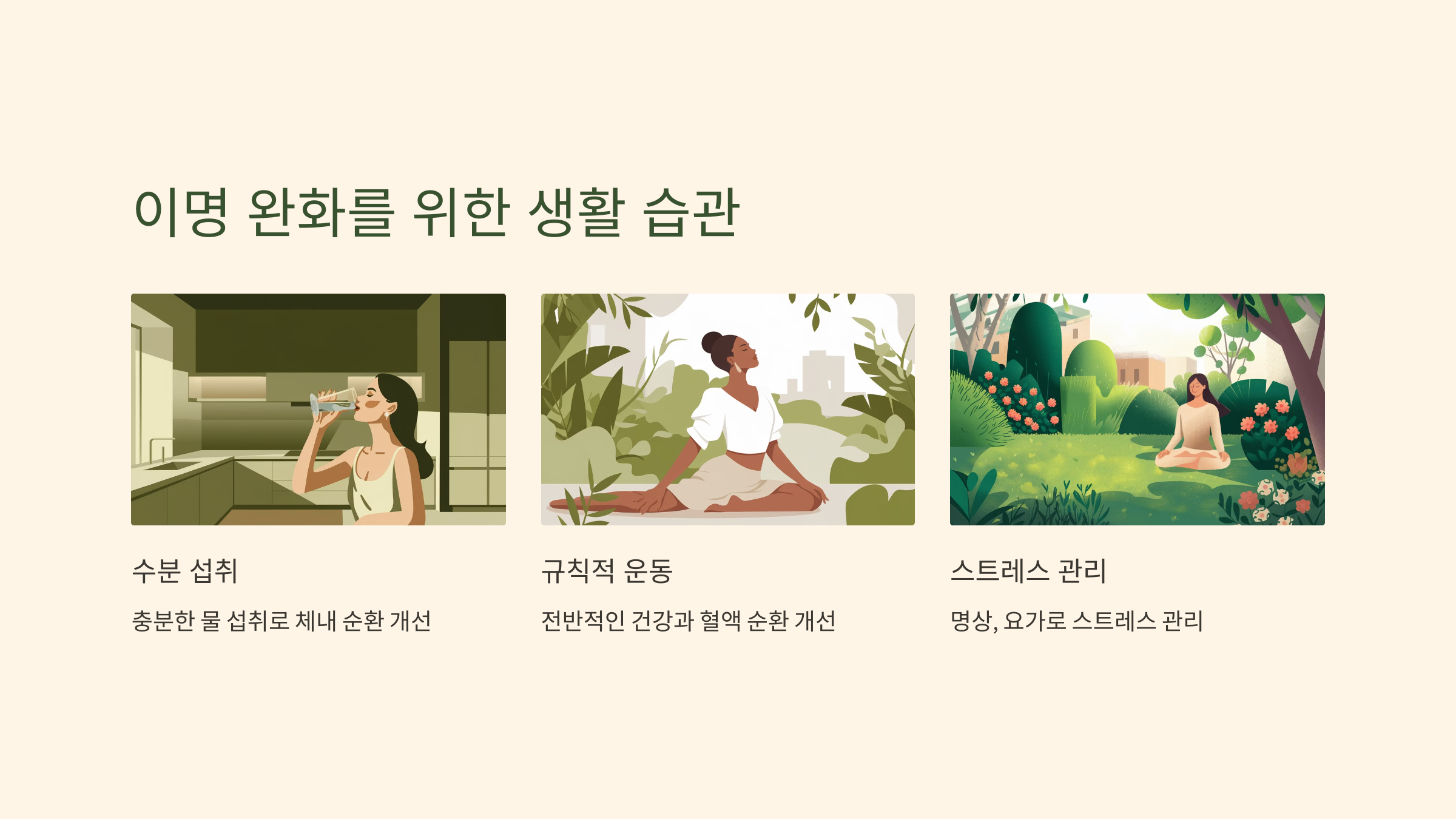 - 충분한 수분 섭취: 몸속의 순환을 돕기 위해 물을 충분히 마셔야 합니다.