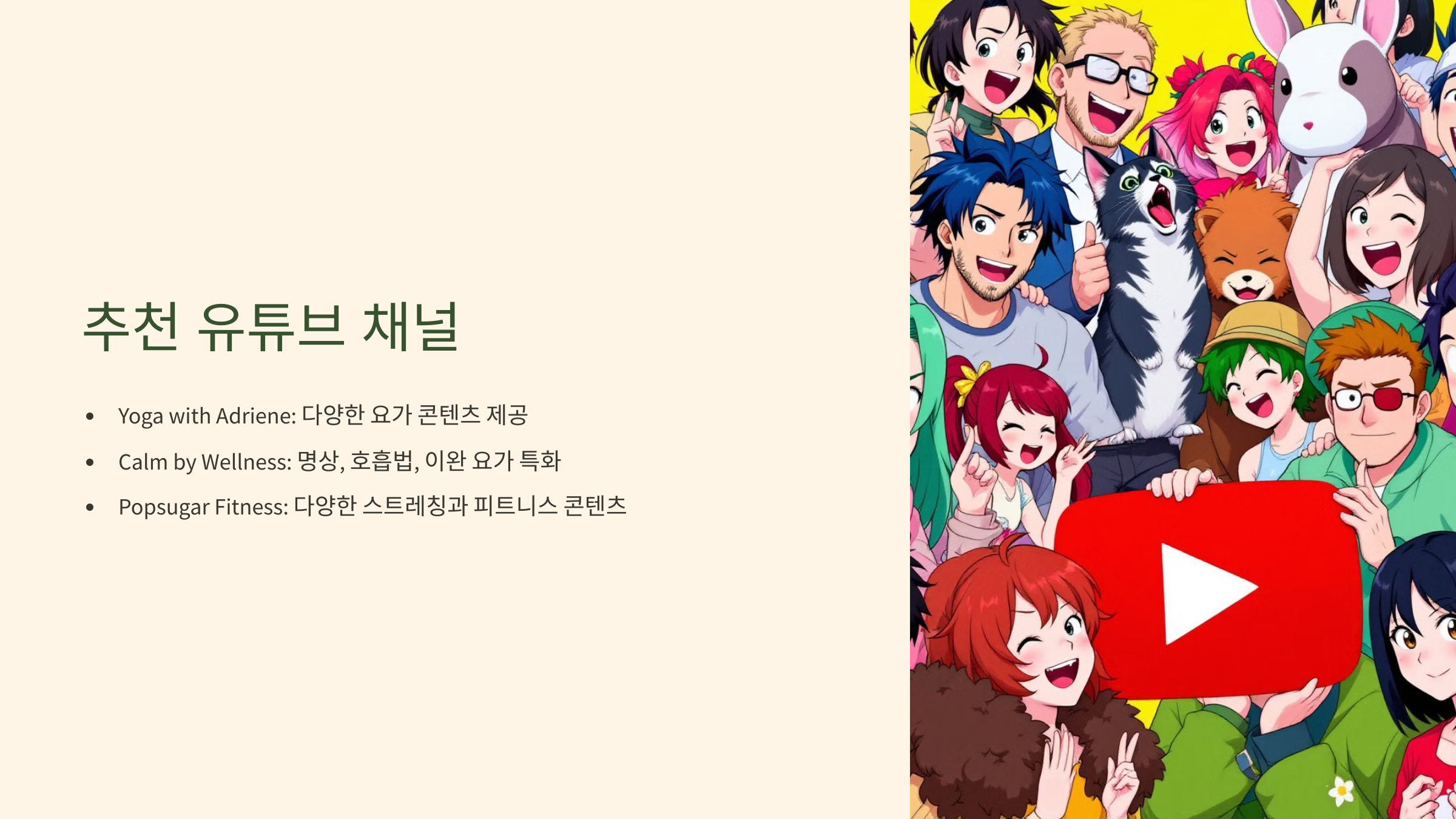 - 내용: 요가의 기초부터 심화 동작까지 다양한 요가 콘텐츠를 제공합니다. 특히, 스트레스를 줄이고 몸과 마음을 진정시키는 요가 영상이 많아 이명 완화에 효과적입니다.