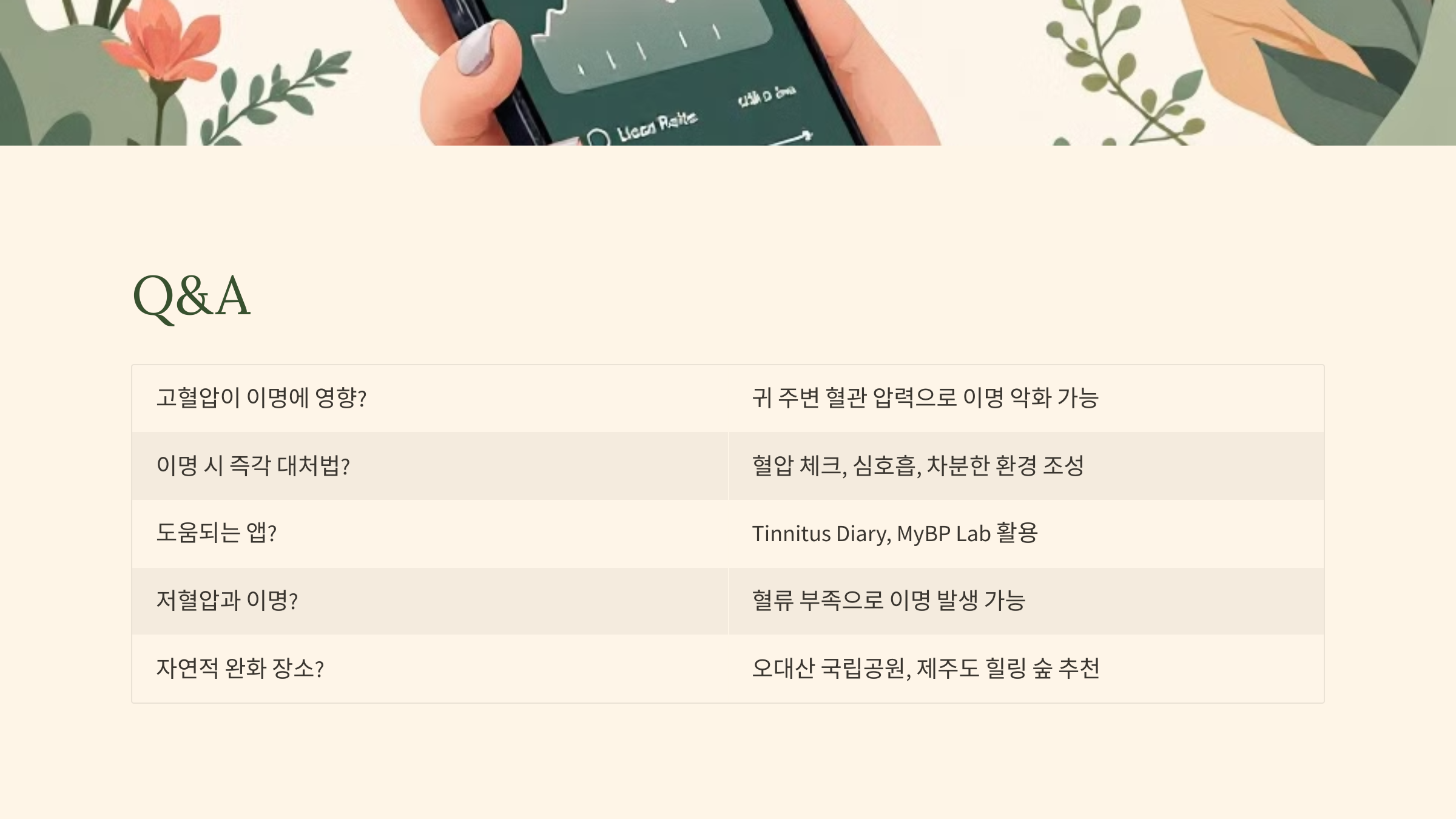 이 포스팅이 이명과 혈압 문제를 겪고 계신 분들께 도움이 되길 바라며, 여러분의 건강한 일상을 응원합니다! 😊