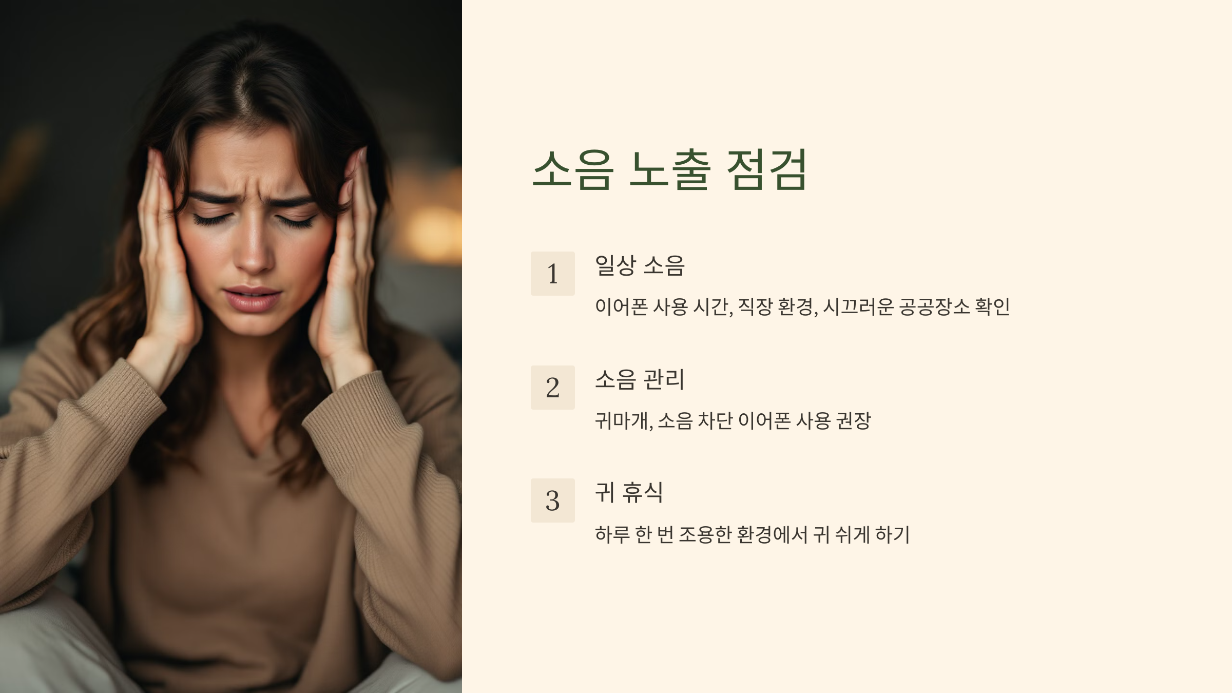 📋 1. 소음 노출 점검: 귀 건강을 지키는 첫 번째 단계