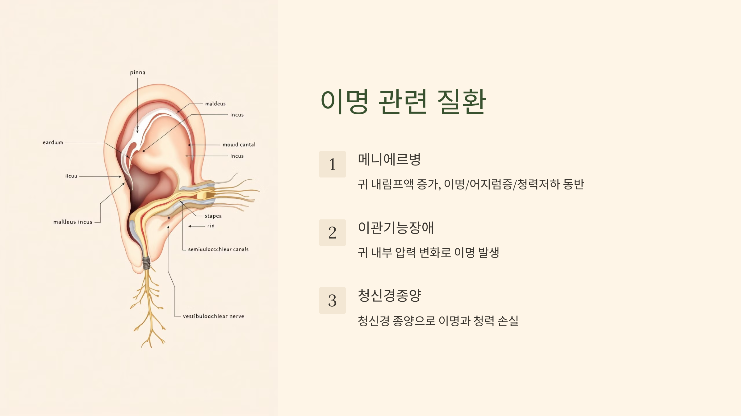 🦻 1. 이명과 연관된 주요 질환: 무엇이 있을까?