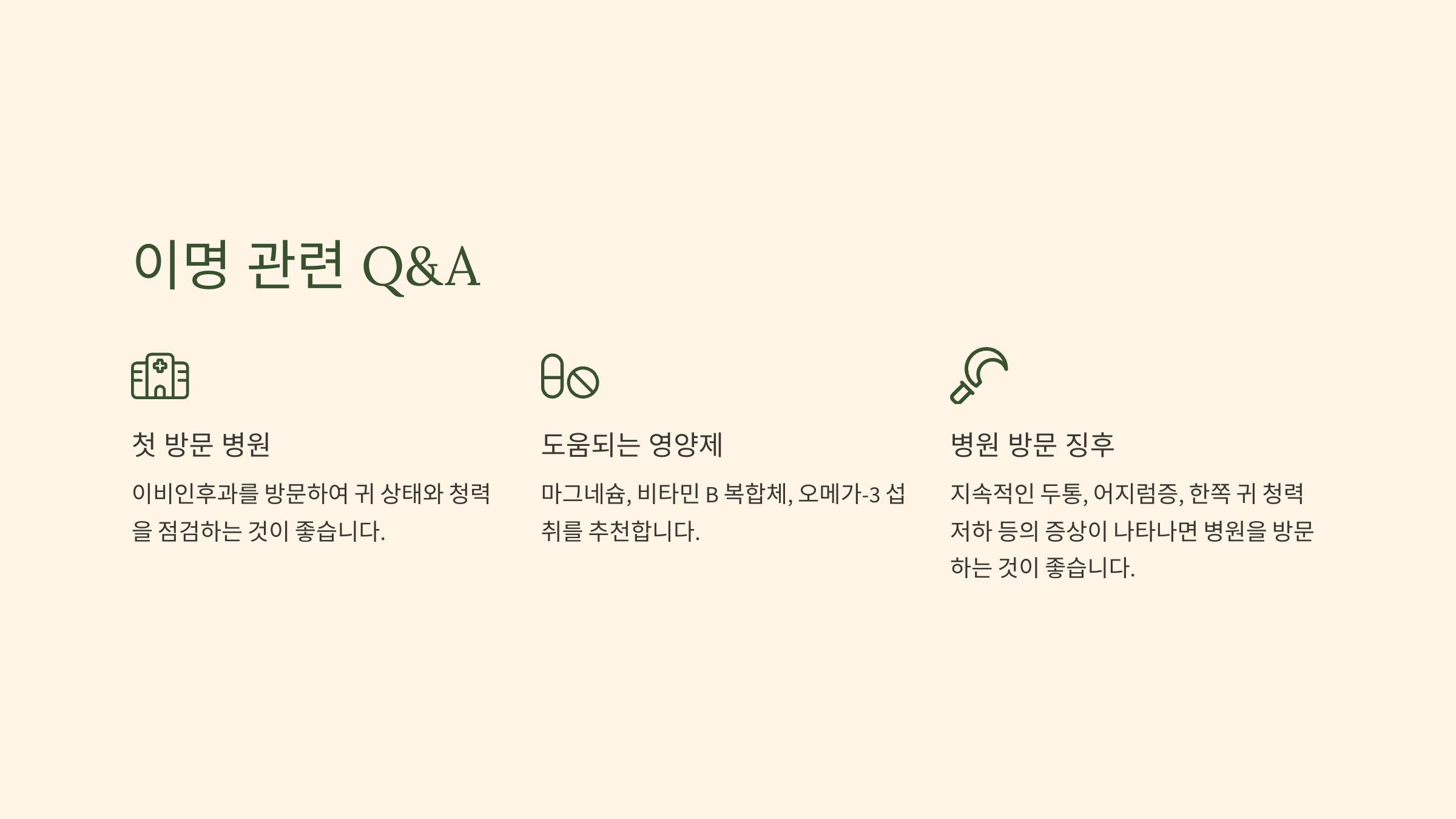 Q3. 이명이 심해질 때 병원을 방문해야 하는 징후는 무엇인가요?