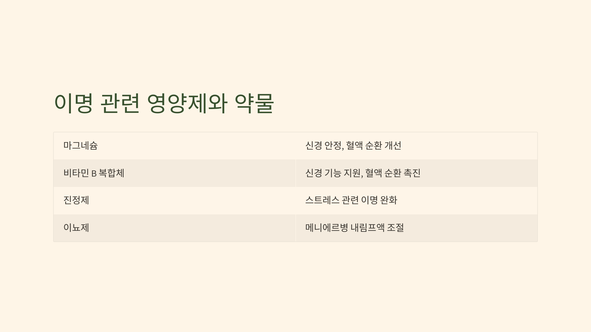 💊 3. 이명 관련 질환에 도움이 되는 영양제와 약물