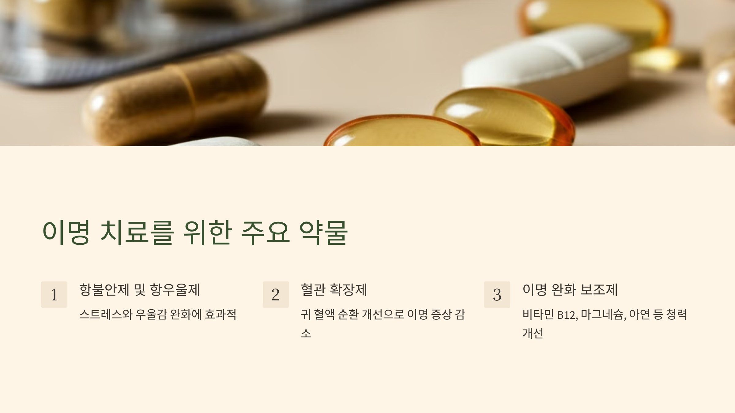 이명 치료에 사용되는 약물은 증상을 줄이고 귀의 혈액 순환을 개선하는 데 도움을 줍니다. 아래는 이명 치료에 자주 사용되는 주요 약물들입니다.