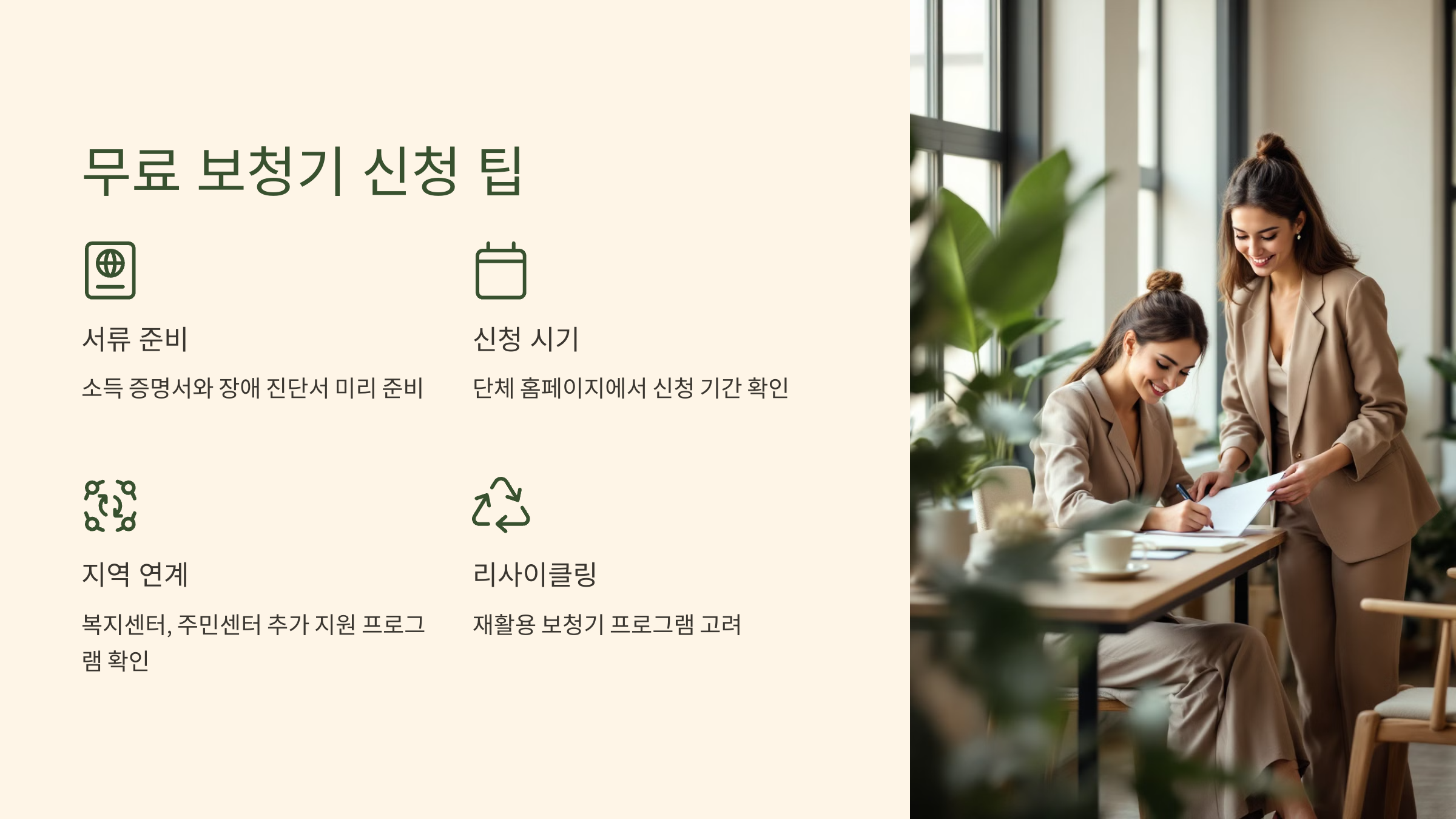 - 소득 증명서와 장애 진단서 준비: 대부분의 지원 프로그램은 소득 증명서와 청각 장애 진단서를 요구하므로, 사전에 준비해 두면 신청 절차를 원활하게 진행할 수 있습니다.