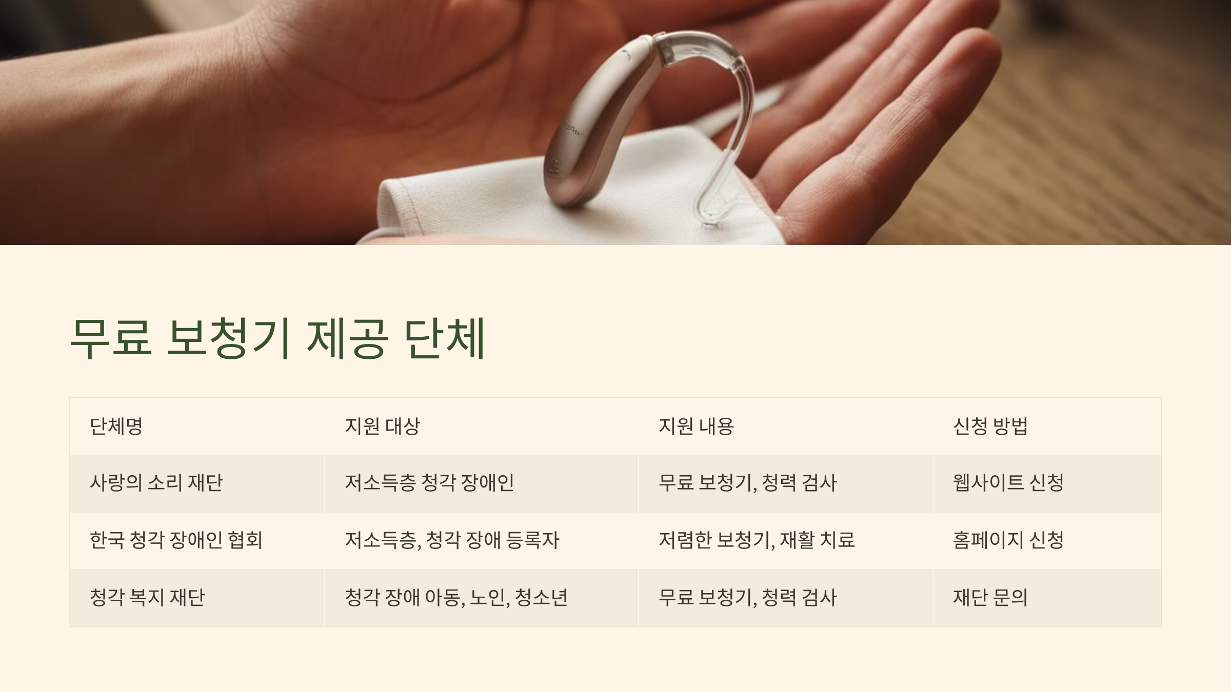 Q1. 한국에서 무료 보청기를 제공하는 주요 단체는 어디인가요?