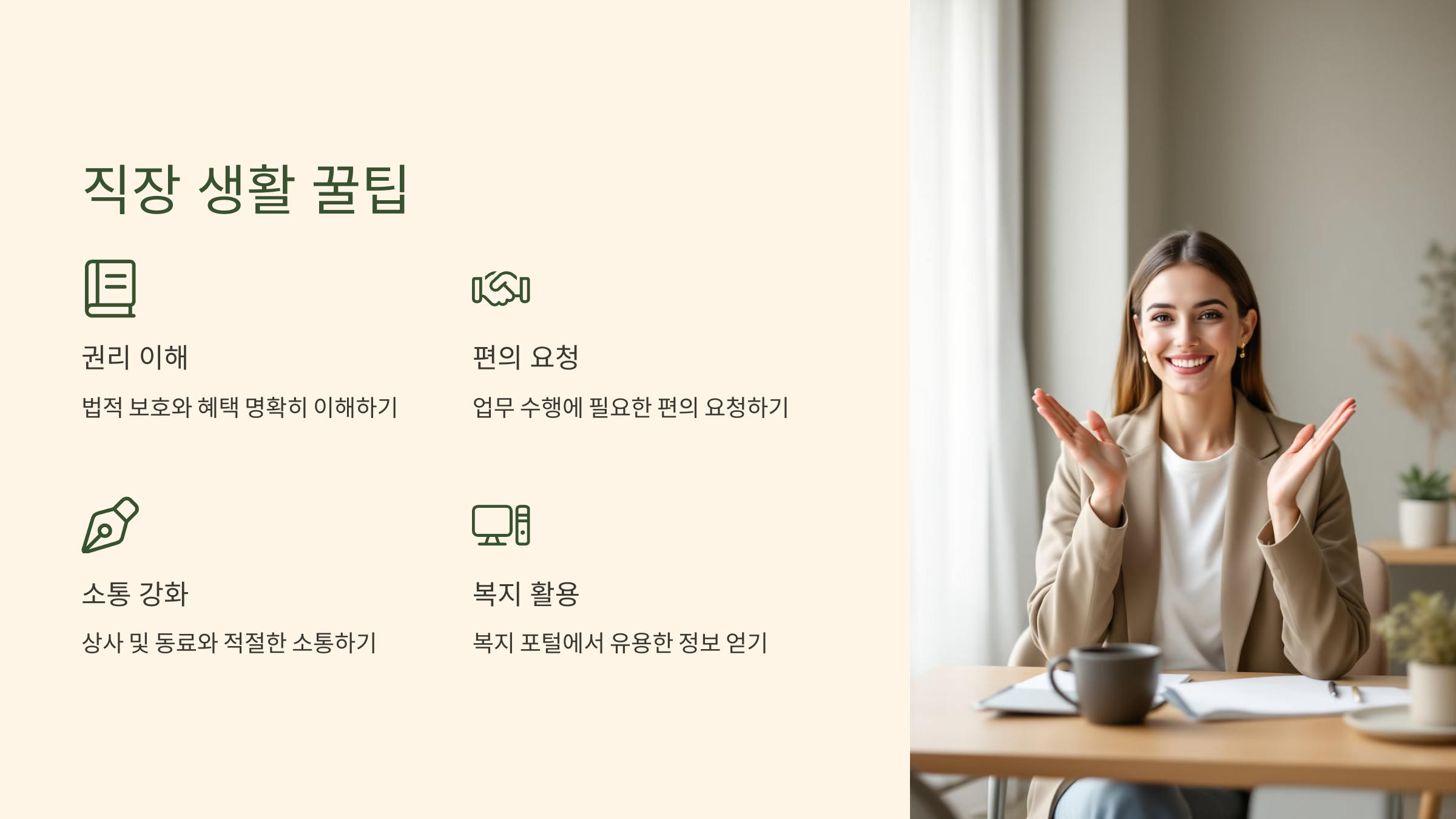 - 효과: 직장에서 의사소통이 원활해지며, 업무 효율성도 높아집니다.