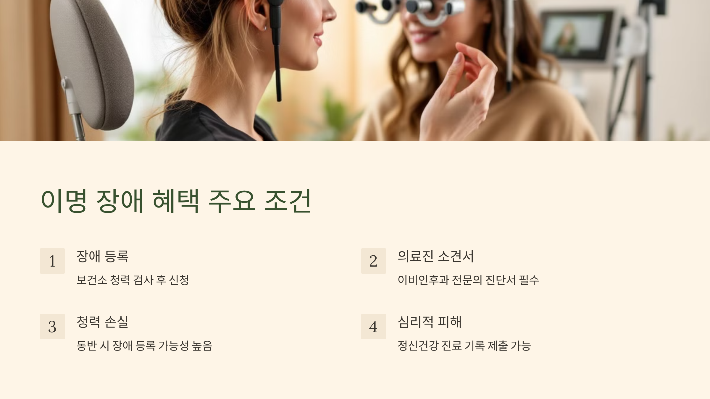 Q1. 이명으로 장애 혜택을 받을 수 있는 조건은 무엇인가요?