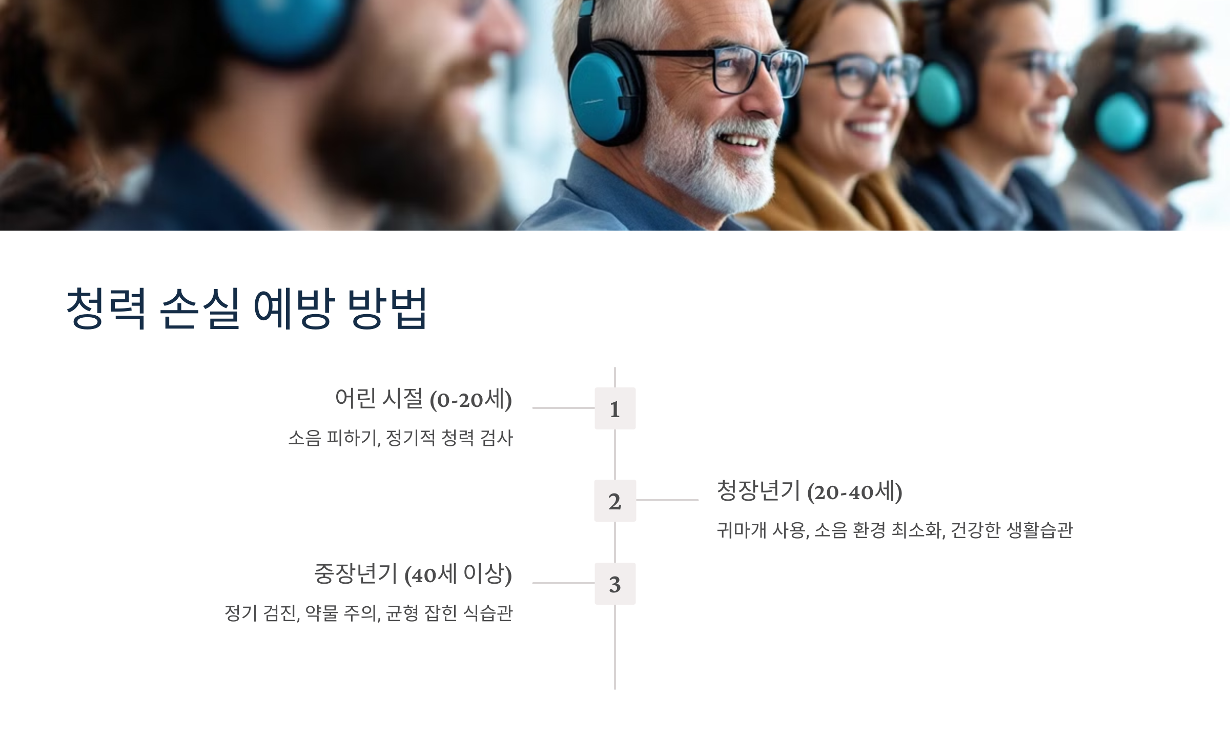 청력을 보호하기 위한 방법은 나이에 따라 다르며, 일찍 시작할수록 효과적입니다. 다음 예방 방법을 따라 청력을 지키세요.